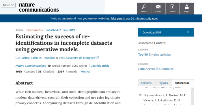 This was a research paper released in 2019, before the coronavirus planned-emic hit the world stage. While to long to into depth here, the researchers found and listed many examples of people being able to re-identify people using supposedly anonymized data sets. While original data had many modifiers removed, it was possible to reverse engineer it, and re-establish people’s identities using multiple sets of incomplete data.
